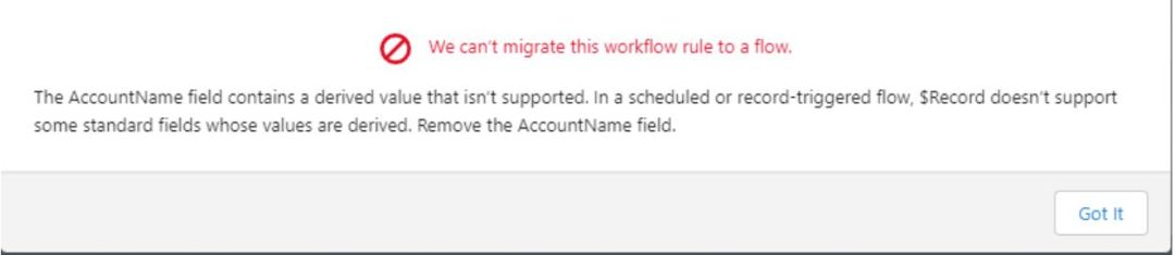 - If you’re evaluating a derived value for some standa rd fields, the conversion won’t work